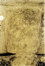 Uxmal: Nunnery, inside Temple Z at base of North Building, right side; painting on capstone.