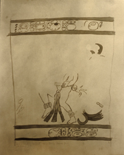 Drawing by Frans Blom of painting on capstone in photo at left.