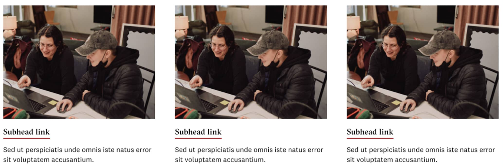 Please note: Hero images are recommended to be extra wide to account for large window widths while maintaining crisp imagery for maximum impact. Each page's headline will appear in white on the lower left side of the hero image. Hero images should be selected with this placement in mind.